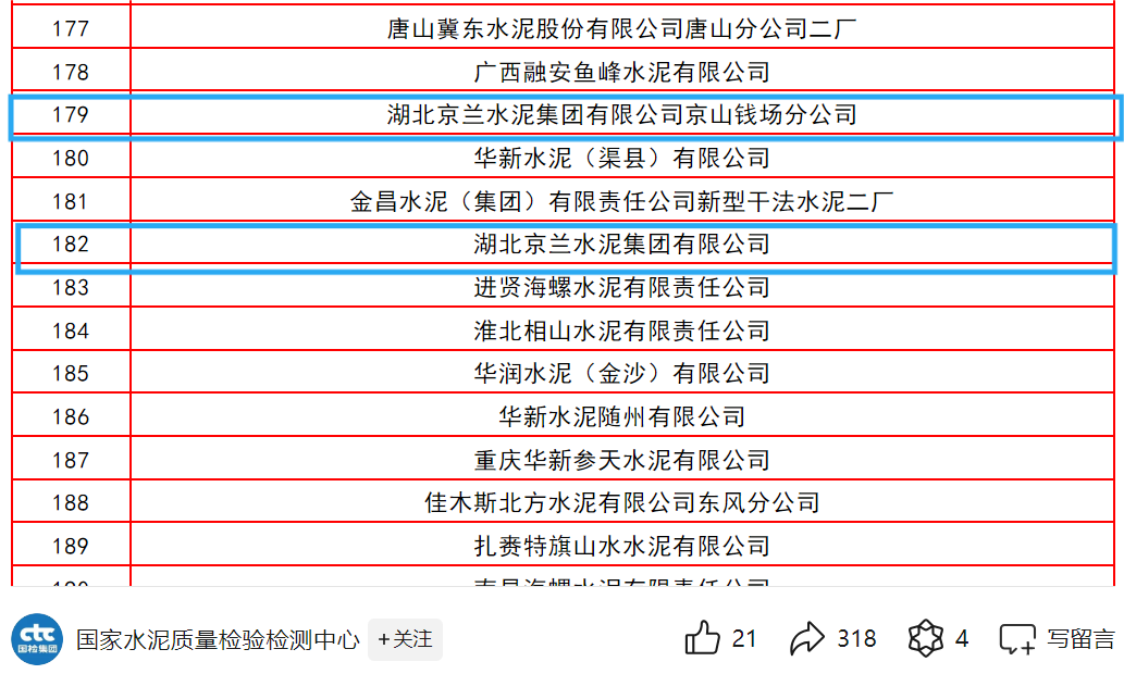8月2日,備受矚目的“天寶華瑞杯”全國第十九次水泥化學分析大對比獲獎名單正式揭曉,在這場全國性的水泥行業質量競技中,京蘭5家水泥公司均榮列榜單。
